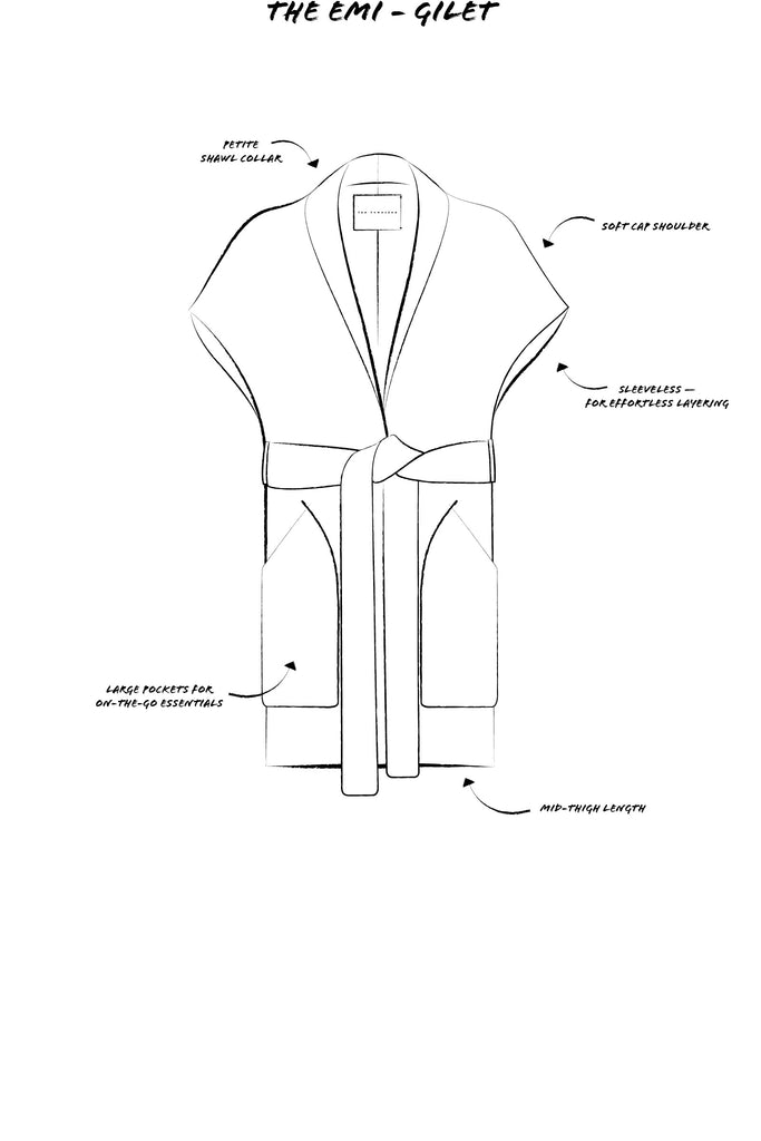 A study in adaptability, The Emi gilet moves with the season — light enough for bare shoulders, substantial enough for layered knits.